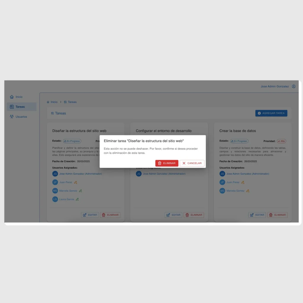 Este proyecto es un sistema robusto de gestión de tareas diseñado para simplificar la creación, edición, listado y eliminación de tareas. Cada tarea incluye atributos como estado (pendiente, en progreso, completado) y nivel de prioridad (baja, media, alta). El sistema admite colaboración multiusuario al permitir asignar tareas a múltiples usuarios e incluye control de acceso basado en roles para gestionar permisos de manera efectiva.